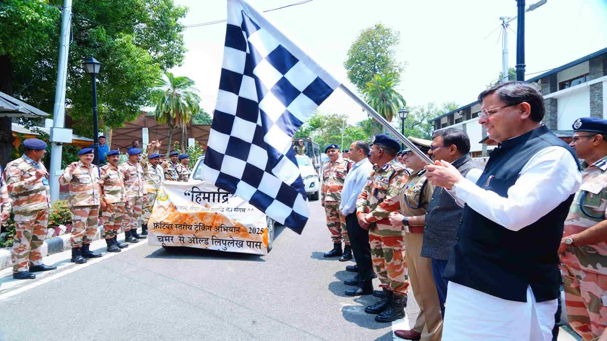 देहरादून: भारत-तिब्बत सीमा पुलिस बल के हिमाद्री ट्रैकिंग अभियान-2025 के तहत 45 सदस्यीय दल उत्तराखंड से लद्दाख के लिए रवाना हो गया है. इस ट्रैकिंग अभियान के सदस्यों को मुख्यमंत्री पुष्कर सिंह धामी ने शनिवार को मुख्यमंत्री कैंप कार्यालय से हरी झंडी दिखाकर रवाना किया.