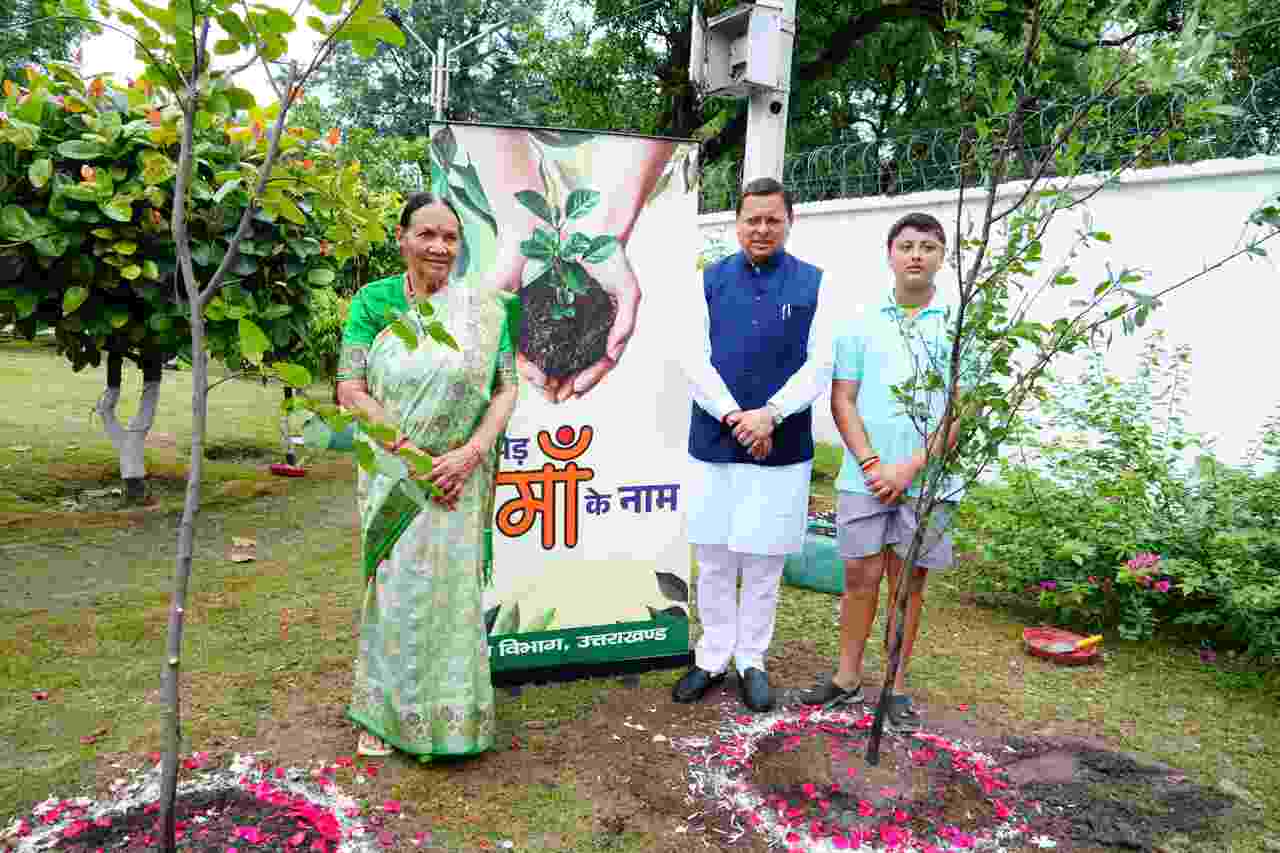 देहरादून: मुख्यमंत्री पुष्कर सिंह धामी ने शनिवार को एक पेड़ मां के नाम अभियान के तहत अपनी माताजी श्रीमती बिशना देवी के साथ पौधारोपण किया। मुख्यमंत्री के सुपुत्र दिवाकर ने भी इस अवसर पर पौधा लगाया। इस पहल का उद्देश्य प्रत्येक व्यक्ति को अपनी माँ के सम्मान में एक पेड़ लगाने के लिए प्रेरित करना है, ताकि भावनात्मक जुड़ाव के माध्यम से पर्यावरण संरक्षण को जन-आंदोलन बनाया जा सके।