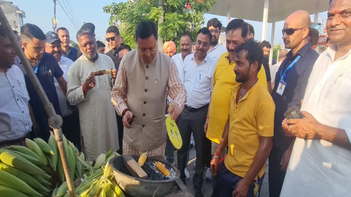 इसके बाद भारामल मंदिर पूजा अर्चना कर लौटते समय सीएम धामी ने खटीमा बाजार से गुजरते हुए अचानक अपने वाहनों का काफिला रुकवा दिया और भुट्टे की दुकान (ठेले) पर पहुंचकर भुट्टा सेकना शुरू कर दिया. इस दौरान उन्होंने एक महिला को अपने हाथ से भूना हुआ भुट्टा देकर अपनी सरलता का परिचय दिया. जबकि स्वयं भी भुट्टे को भूनकर सड़क किनारे ठेले पर खाया.