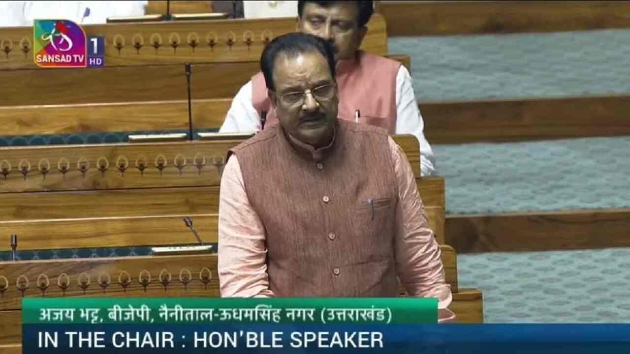 हल्द्वानी: इस बार गर्मी के सीजन में वानाग्नि की घटनाओं ने कुमाऊं मंडल में भारी नुकसान पहुंचा. वानाग्नि की घटना में कई लोगों की जान भी जा चुकी है. ऐसे पूर्व केंद्रीय रक्षा राज्य मंत्री व नैनीताल उधम सिंह नगर संसदीय क्षेत्र से सांसद अजय भट्ट ने लोकसभा सदन में उत्तराखंड में लगातार बढ़ रही वनाग्नि को लेकर सवाल उठाते हुए राज्य के लिए विशेष पैकेज की मांग की है.