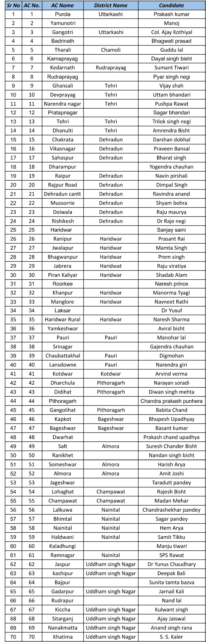 चंद्रशेखर भट्ट ने दी इन 70 प्रत्याशियों को दी बधाई…