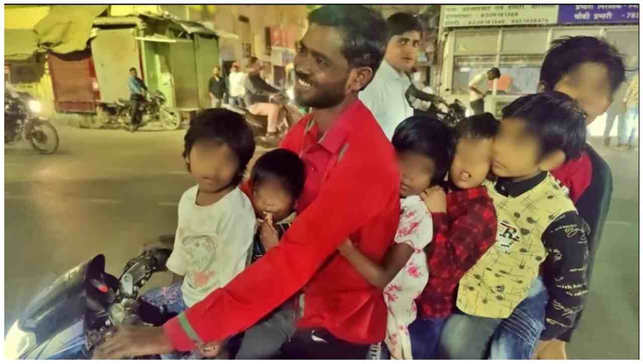 वाराणसी: सोशल मीडिया पर एक फोटो काफी वायरल हो रही है. इस फोटो में एक शख्स को बाइक पर 6 बच्चों को बैठाकर सफर करते
