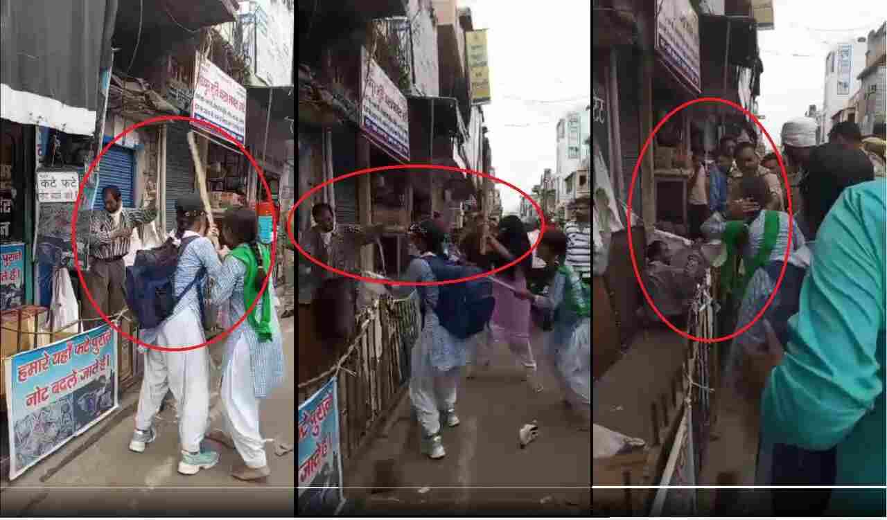 हापुड़: उत्तर प्रदेश के हापुड़ से एक वीडियो सोशल मीडिया पर सामने आया है, जिसमें कुछ स्कूली लड़कियों को एक युवक की पिटाई करते देखा जा