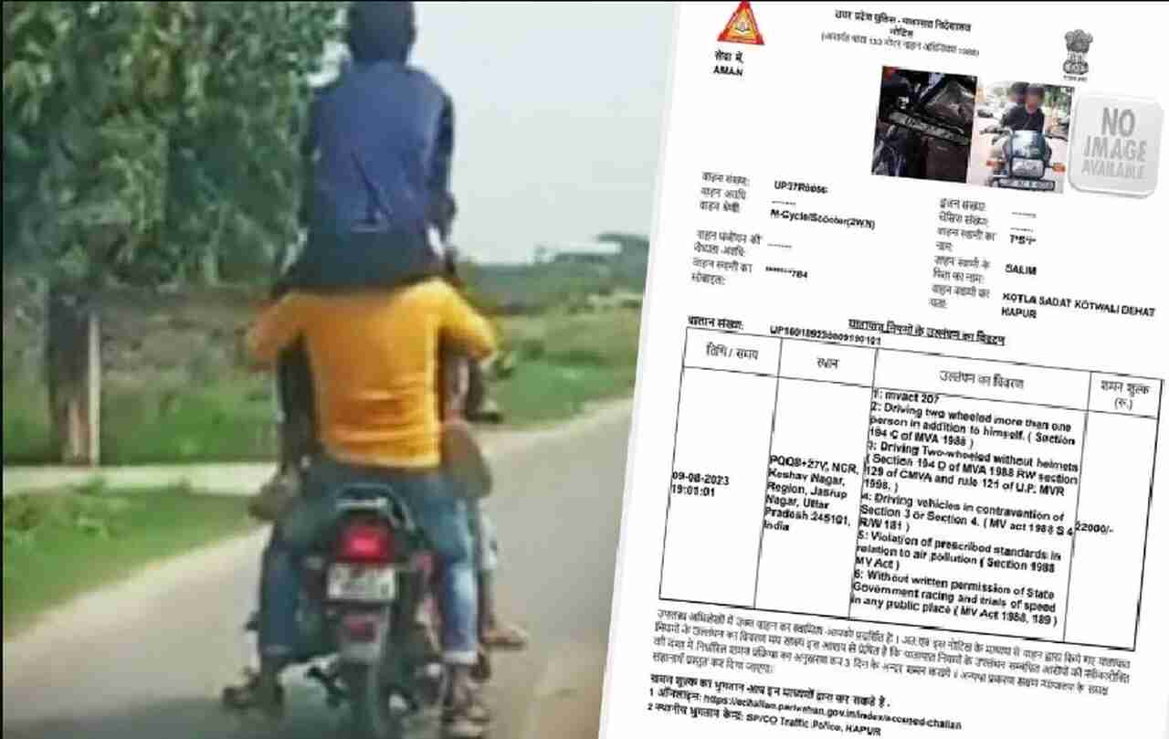 हापुड़: उत्तर प्रदेश के हापुड़ से एक हैरान करने वाला वीडियो सामने आया है. इस वीडियो में एक बाइक पर सात युवक स्टंट करते नजर