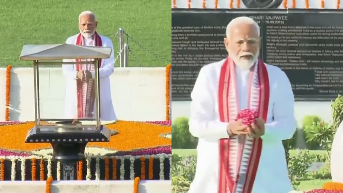 प्रधानमंत्री पद की शपथ लेने से पहले नरेंद्र मोदी ने महात्मा गांधी और पूर्व पीएम अटल बिहारी वाजपेयी को दी श्रद्धांजलि