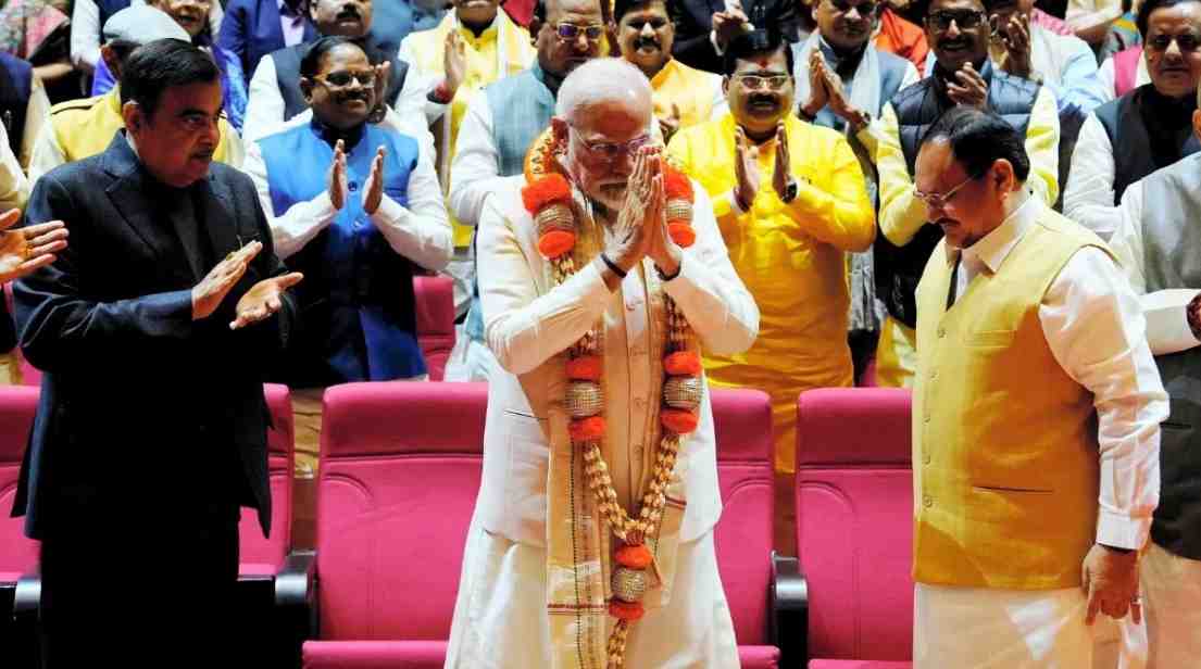 नई दिल्ली: संसद भवन में हुई भारतीय जनता पार्टी की संसदीय दल की बैठक में तीन राज्यों में हुई जीत का जश्न मनाया गया। इस दौरान