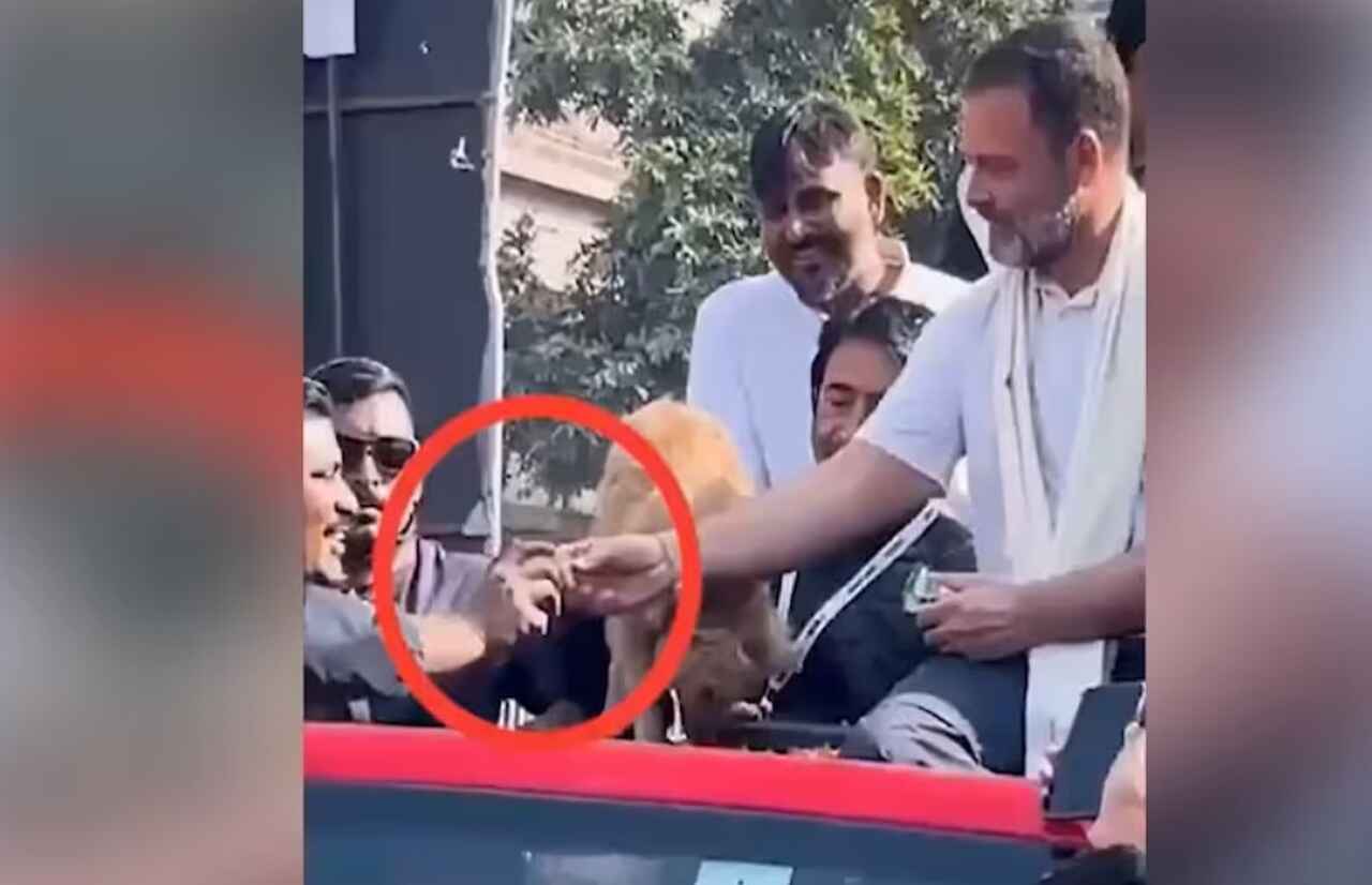 नई दिल्ली: राहुल गांधी के भारत जोड़ो न्याय यात्रा के दौरान कार की छत पर बैठकर कुत्ते को बिस्किट खिलाने का एक वीडियो वायरल हो