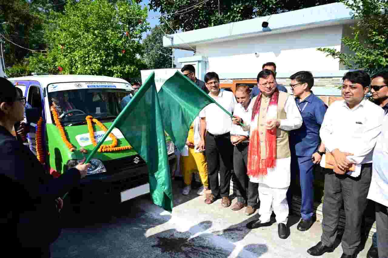 खटीमा: हंस फाउंडेशन देहरादून के सहयोग से प्रदत्त 08 व हिन्दुस्तान जिंक व ममता संगठन के संयुक्त सौजन्य से 1 मोबाईल स्वास्थ्य सेवा वाहन को मुख्यमंत्री पुष्कर सिंह धामी ने गुरुवार को निजी आवास, नगला तराई खटीमा से हरी झण्डी दिखाकर रवाना किया।